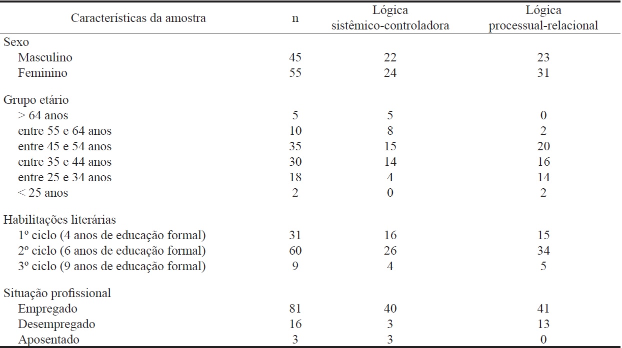 Na Tabela 1 é apresentada a caracterização sociodemográfica dos autores do material autobiográfico que constitui o corpus documental e o seu enquadramento em cada uma das lógicas organizacionais consideradas na análise.