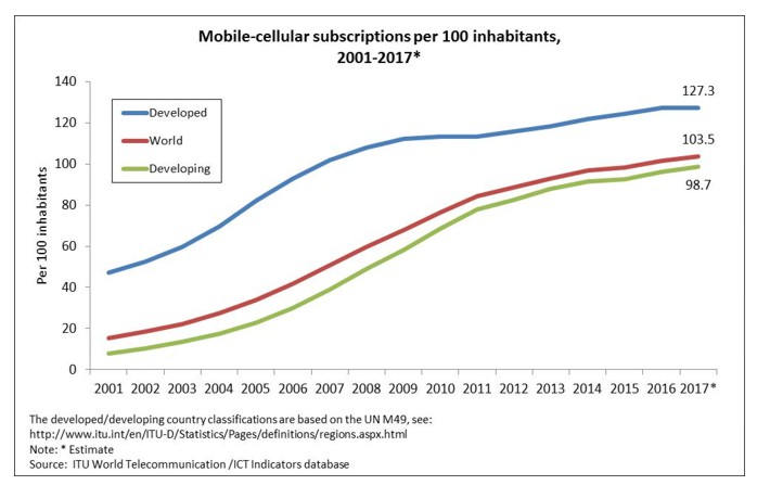 Once viewed as an item of luxury and privilege, mobile phones and devices have become a near necessity throughout the developed and developing world alike. According to a 2007 United Nations study, over two thirds of the world’s mobile phones are owned and utilized within developing countries. With less-developed wired infrastructure and the high cost associated with its modernization and implementation, the adoption of cellular technologies can be attributed to a necessary leapfrogging of traditional telephony and communication technologies. In addition, the unsound and undependable infrastructure of many developing countries does not augur well to mass hardwired ICT adoption. The portability, battery power, and flexibility of mobile technologies are well suited for lifestyles of those residing in the developing world.