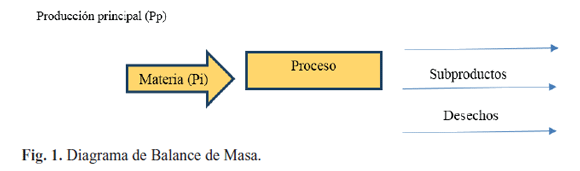 Para la determinación de las mermas se realizó el balance de masa, el cual se basa en el principio de conservación de la materia: “la materia no se crea ni se destruye sino que por el contrario se transforma”, razón por la cual se hace necesario profundizar en este tema.(6) Según Simón ReifAcherman, en su libro Elementos de Procesos,(6) “el balance de materia es simplemente una contabilidad de los flujos de materiales que entran a un proceso, los que salen de él y los cambios de inventario que ocurren en su interior. El balance se realiza alrededor de un sistema donde se puede aplicar a la especie molecular integrante de los flujos totales” (Fig. 1).