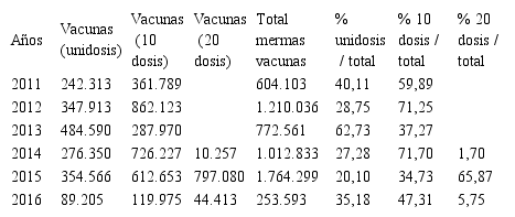 • Las mermas de vacunas en presentación unidosis se comportaron de forma estable en los años analizados.