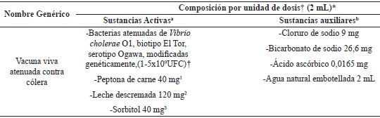 Independientemente de las medidas sanitarias que se puedan tomar, tanto para la prevención como para la erradicación de la enfermedad en los países donde el cólera es endémico, estas medidas no son suficientes. Entonces, las vacunas entran a tener un rol determinante en la prevención. Las únicas vacunas comercialmente disponibles corresponden a tres variantes de células muertas y que fueron precalificadas por la OMS (Dukoral®, Shanchol® y Euvichicol®).5 Estas vacunas son seguras, fáciles de administrar e inductoras de eventos adversos mínimos, pero precisan de dos o tres dosis, por lo que la logística del proceso de vacunación constituye una barrera significativa para su empleo en situaciones epidémicas. Además, para mantener un nivel adecuado de protección son necesarias intervenciones de refuerzo cada 2 o 3 años,6 lo cual limita su uso, ya que los costos fundamentales de las campañas de vacunación se asocian con la distribución de la vacuna, más que con su costo de fabricación.