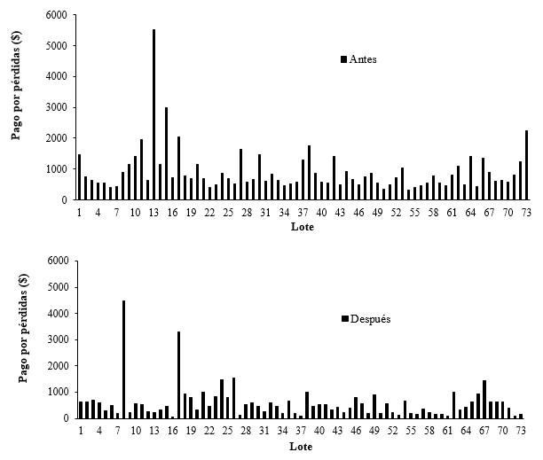 El comportamiento del monto resarcido al cliente por rechazos de producto, se muestra en la Figura 4. El precio de venta del producto para exportación es de 0,60 $/vial.