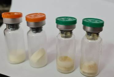 All lyophilized SPV vaccine formulations containing Carbopol® and lactalbumin hydrolysate/sucrose stabilizer underwent physical examination.