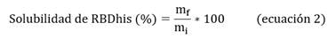 Donde mf y mi son las masas de RBDhis (aa 319-541) eluída de la matriz cromatográfica y antes de aplicar a la matriz, respectivamente.