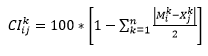 is the participation of good k in the exports of country j; and n is the number of goods.