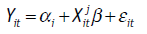 i representa i-ésima unidade de corte transversal; t o t-ésimo período de tempo; Yit representa o valor da variável dependente para a unidade i no período t; αi é constante;