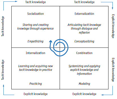 What is knowledge? How is new knowledge created? How is it transmitted? These questions have been studied for many centuries, from disciplines such as gnoseology, epistemology or logic. A few decades ago it started capturing the interest of economic and business sciences. The Japanese thinker Ikujiro Nonaka is among the scholars that have most studied the use, typology, and creation of knowledge applied to the business realm. His approach not only transcends the business world —including contributions from Aristotle, Polanyi, Nishida, Dewey and Whitehead, among others— but also relies on sources beyond the Western tradition, e.g., the Japanese notion of ba is a key idea for understanding his proposals and models. Ba is a shared context in motion in which knowledge is created, a concept related to physical or virtual spaces for interaction and learning (Nonaka et al., 2000). Ba refers to “the process of opening up a concrete space or ‘lived place’ where human beings can encounter each other” (Güldenberg & Helting, 2007, p. 112).