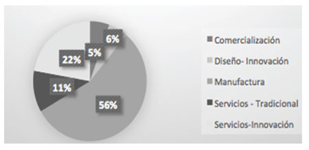 En cuanto a la actividad económica se encuentra una mayor heterogeneidad, pues participaron empresas de sectores tradicionales, como el de vestuario femenino, hasta empresas desarrolladoras de software. De acuerdo con esta situación, se realizó una clasificación como se muestra a continuación (Figura 2).