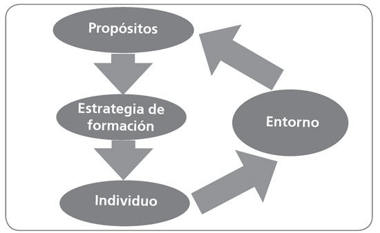 Entorno-propósito: modifica los propósitos de formación basado en las necesidades de la comunidad, las formas como se relacionan los individuos y las comunidades, y los comportamientos de conducta establecidos por la sociedad.
