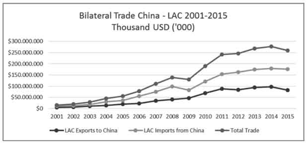 In the report of the OECD/ECLAC/CAF (2015), it is concluded that "trade between Latin America and China has expanded in an unprecedented way over the last 15 years; [...] The result is stronger, though uneven, global value chain linkages between China and Latin America."