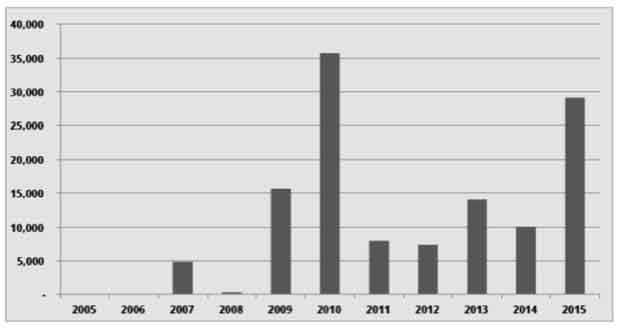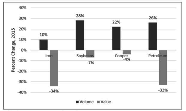 Decline in commodity prices is a current challenge for Latin American exports to China (Gallagher & Porzecanski, 2010; Farooki & Kaplinsky, 2012). Even though the quantity of the main exports have continued to increase, the value has been falling, thus creating a pressure for Latin America to diversify and upgrade its production structure in order to have a more beneficial trade relation with China (OECD/ECLAC/ CAF, 2015) (Figure 2).
