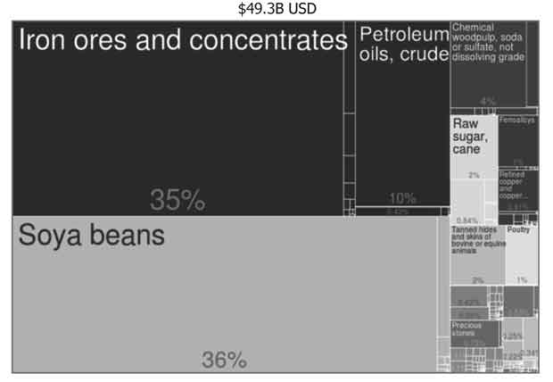 Brazil is an important case to study, due to its recent performance, the size of its market, the enormous potential it has, and the fact that China became Brazil's main trade partner since 2009 (Latin American Herald Tribune, 2009). According to Wilkinson and Wesz (2013), the trade relation with China has produced benefits and losses to Brazil; for instance, China's demand on commodities and agricultural products has helped to promote Brazil's agro-industrial and mineral exports. However, it has generated export concentration. Crude oil, iron ore and soybeans accounted for more than 80% of Brazil's exports to China in 2014 (Casanova et al, 2015) (Figure 3).