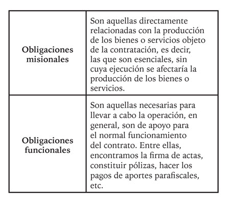 Deberá tenerse en cuenta que existen dos tipos de obligaciones específicas: las misionales y las funcionales (Tabla 2).