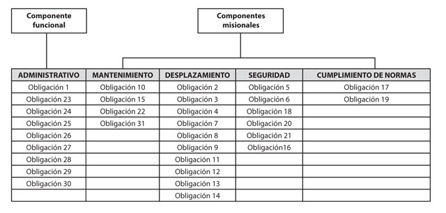 Una vez que se seleccionaron los componentes, el segundo paso consiste en realizar una clasificación de cada una de las obligaciones del contrato en cada uno de ellos, que una vez revisadas por la mesa técnica dieron como resultado la Tabla 3.