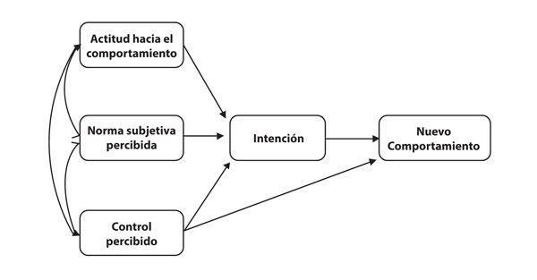 La TCP utilizada en múltiples investigaciones para medir la intención emprendedora de las personas (Valencia, Montoya y Montoya, 2016), fue propuesta por el psicólogo social Icek Ajzen en 1991 como complemento de la teoría de la acción razonada (Ajzen y Fishben, 1980) buscando perfeccionar el marco de comprensión de los antecedentes de las acciones de los individuos. La TCP que ha derivado en diversos cuestionarios como los utilizados por Liñán, Moriano y Jaén (2016), postula como predictores de la creación de empresas los siguientes factores: la actitud hacia el comportamiento, la norma subjetiva y el control percibido o autoeficacia. La figura 1 muestra el modelo conceptual propuesto: