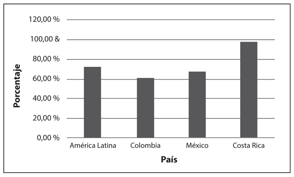 Además de esto, otra de las barreras de las pymes para acceder a los créditos bancarios, son las garantías exigidas por los bancos. Como se evidencia en la figura 3, en América Latina el 72.4 % de los créditos otorgados por los bancos a las empresas exige algún tipo de garantía; por su parte, en Colombia corresponde al 60.5 %, en Costa Rica este requisito alcanza el 97.2 % de los créditos y en México al 67 % (Lecuona, 2014). Debido a esto, muchos gerentes utilizan garantías personales sobre créditos tomados a nombre de la empresa o utilizan créditos personales para financiar la actividad de esta, dado que las limitaciones y requerimientos de dichos créditos son menores (Pesce, Esandi, Briozzo y Vigier, 2015).