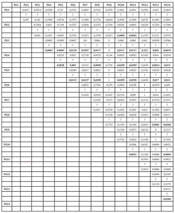 Se analiza el coeficiente de correlación considerando el grado de intensidad o dependencia mutua entre dos variables -para el estudio cada variable se relaciona con una pregunta-, aplicando Statgraphics Centurión de acuerdo con las preguntas contestadas por los encuestados, considerando que si tiende a 1 el grado de correlación o asociación entre las variables será mayor; si tiende a 1 y el P es < 0,05, se rechaza el conjunto de hipótesis nula Ho. -ver anexo A-. Además, se identifican en el anexo A, las variables o respuestas de las preguntas dadas a la encuesta, con positiva y fuerte correlación -tienden a 1 y el P es < 0,05-.