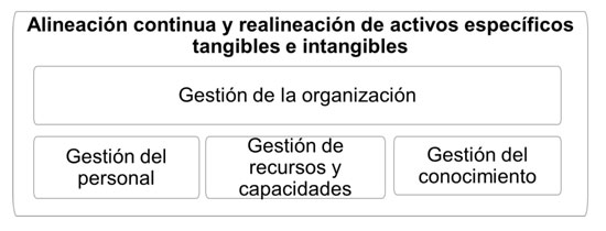 Por su parte, la capacidad de reconfiguración o mantenimiento hace referencia a la habilidad de la empresa para alinear los nuevos procesos a su estructura actual; de ser requerido, eliminando o combinando recursos y capacidades existentes (Ellonen, Jantunen y Kuivalainen, 2011; Morales et al., 2016). Para Teece (2009), las organizaciones deben buscar que la innovación sea sistémica a nivel organizacional, y así generar procesos continuos de creación de valor, o bien a partir de la renovación del modelo de negocio y los recursos organizacionales, o bien a través de la transferencia de capacidades y la realineación de estrategias para el aprendizaje y la gestión de nuevos conocimientos (Figura 3).