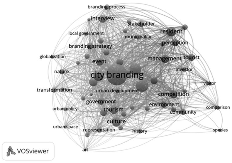 For the purpose of identifying the most frequently occurring topics in the field of city marketing and the relationship between the most cited authors, we used the bibliometric package VOSviewer (Waltman & van Eck, 2015). This software allows to see diagrams that show the topics of highest occurrence in titles, abstracts, and keywords of the chosen articles. In the graphs by VOSviewer, the most relevant elements are observed in larger size; in addition, the closeness between each element evidences the degree of co-occurrence (Waltman & van Eck, 2015).