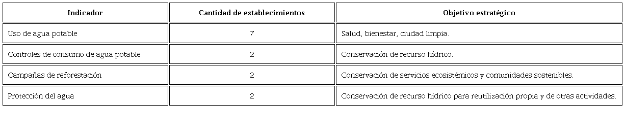 Por su parte, con respecto al sello de calidad sanitaria entregado a algunos restaurantes, solo el 50 % posee controles de consumo de agua y el 77 % de los hoteles. Estos indicadores muestran poco avance en términos de los Objetivos del Desarrollo Sostenible, en relación con el uso del agua, así como muestran oportunidades de mejora para la sostenibilidad del sector turístico.