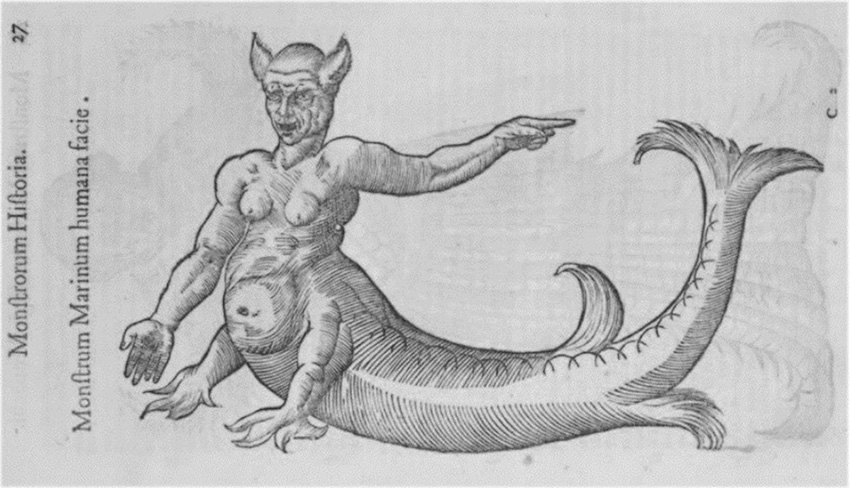Según Kristiansson y Tralau (2013), es posible descubrir, en un sentido ignorado hasta la actualidad, un cuerpo monstruoso en el frontispicio del Leviatán. El soberano, cuyo cuerpo se compone por un número indefinido de súbditos, es de hecho un monstruo acuático6 que emerge del agua compuesto por escamas; sus extremidades inferiores son, en realidad, las de un dragón o un gran pez. Tales conclusiones son posibles a partir de un conjunto “objetos enigmáticos más allá de las colinas [que] solo pueden tenerse en cuenta si otorgamos que el Leviatán tenga el cuerpo inferior de un pez o dragón” (Kristiansson y Tralau, 2013, p. 312, énfasis propio). El supuesto enigma propuesto implicaría la presencia ausente -valga la antinomia- de una imagen monstruosa (Figura 2) en el cuerpo inferior soberano, cuya expresión involucraría el condicionamiento de “las mentes de los ciudadanos y lectores como para hacerles temer al soberano y obedecer la ley” (Kristiansson y Tralau, 2013, p. 315). En otras palabras, la representación soberana del frontispicio es, explícitamente, un monstruo; el soberano produce un miedo latente al ser, él mismo, una bestia anti-natural, artificial. Por lo tanto, de acuerdo a los comentaristas, uno de las interpretaciones posibles del frontispicio radica en la presencia/ausencia, o en sus palabras, en la presencia oculta de un “monstruo marino [que] tiene el propósito de inducir el 'terror'” (Kristiansson y Tralau, 2013, p. 315).