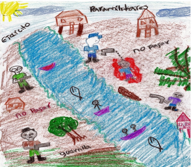 En el imaginario de las comunidades el desplazamiento por los ríos y sus trochas que los comunican con las veredas vecinas representa el desafío de sobrevivir en una geografía fuertemente devastada y controlada por la guerra y sus actores. Frecuentemente el control territorial de la frontera está dividido por áreas: unas con presencia guerrillera, ahora “disidentes”, y otras con presencia de neoparamilitares o bandas criminales. Ambas facciones obligan a la gente a entregar sus territorios para ponerlas al servicio de las economías del narcotráfico. Esto ha generado fronteras invisibles que rompen los lazos de parentesco, socialización y comunicación entre las personas y familias afrodescendientes. Los grupos armados imponen métodos arbitrarios que estructuran y garantizan modelos paraestatales de control territorial, político y económico en las comunidades.
