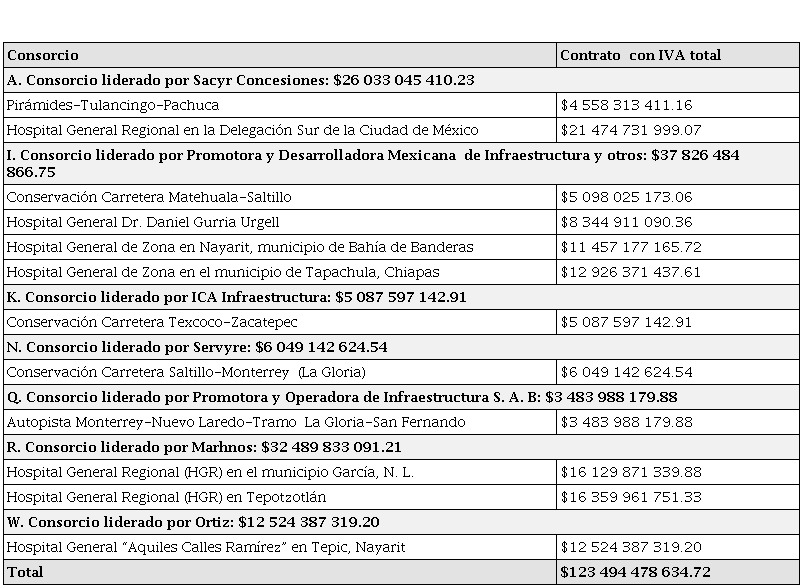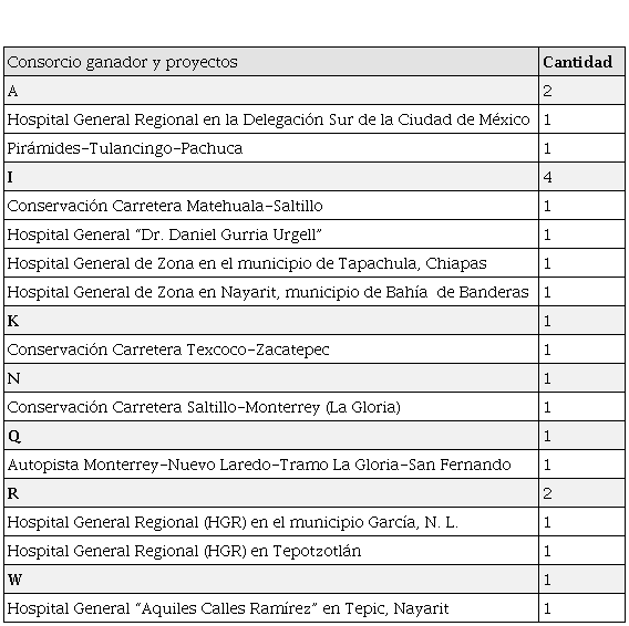 De los cuatro proyectos del sector IMSS, dos fueron para el consorcio I y dos para el consorcio R, es decir, se tienen dos ganadores.