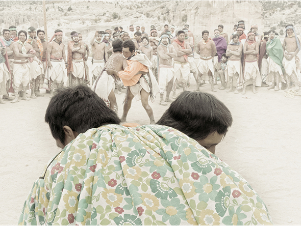 En el contexto ritual, nunca he visto luchas entre mujeres por el simple hecho de que los bandos antagónicos que se enfrentan en el escenario están constituidos por hombres.Tehuerichi, abril de 2015