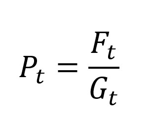 Donde P es la proporción del financiamiento respecto al gasto público, F es el monto del financiamiento público que reciben los partidos políticos, G es el gasto público total y t es el año para el que se calcula la proporción.