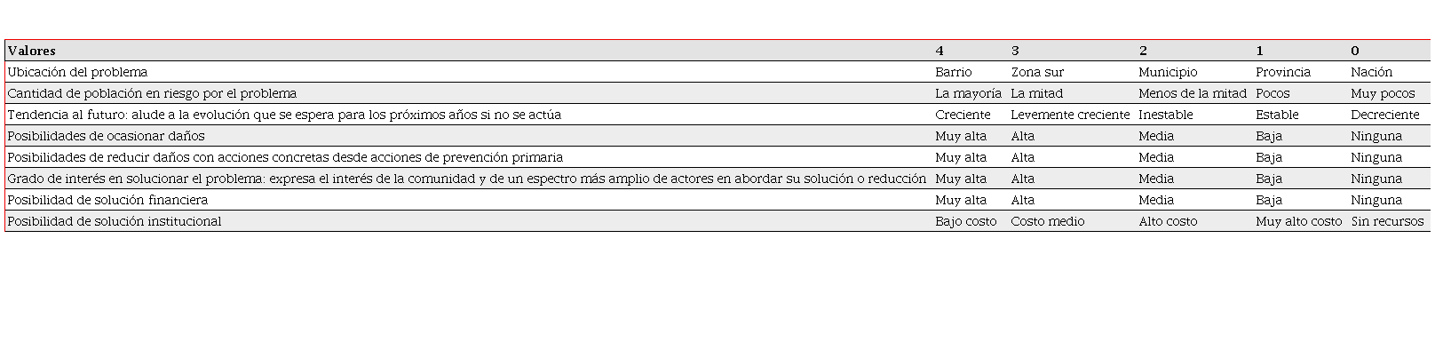 Grado de interés: expresa el interés del gobierno municipal y de un espectro más amplio de actores en abordar su solución o reducción. (p. 33)