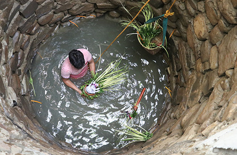 El tlamatiketl se sumerge en el pozo de la comunidad para hablar cara a cara con Apanchaneh, la sirena dueña del agua subterránea.