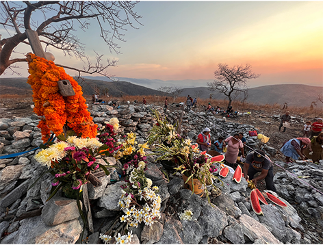 En el primer caso, los pueblos otomíes de esta sierra, enclavada entre las ciudades de México y Toluca, han experimentado en los años recientes una poderosa gentrificación urbana que hace pensar que los incendios tienen propósitos inmobiliarios peligrosos. En el segundo caso, se vivió en el 2024 una intensa actividad ceremonial de veneración a la Sirena-Santa Juanita, la cual no se detuvo ni con la sustracción de esta piedra sagrada de su santuario en mayo de este año —las imágenes corresponden a una celebración llevada a cabo un par de meses antes de su robo—. En el tercer caso, las imágenes dan cuenta de la petición de lluvia en el cerro más alto de San Francisco Ozomatlán, Guerrero.
