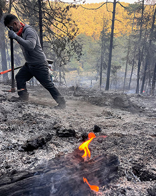 Brigadista combatiendo los incendios en el bosque de Jilotzingo durante la Semana Santa de 2024