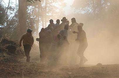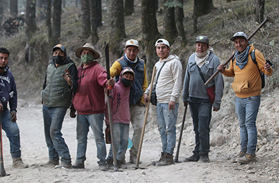 Brigadistas voluntarios de combate a los incendios en el bosque de Otozolotepec, Estado de México; Semana Santa de 2024