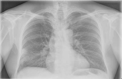 Paciente de sexo masculino de 57 años de edad. Con antecedentes personales: fumador importante (40 a 60 cigarrillos al día), hipertensión arterial, prostatectomía radical por adenocarcinoma de próstata. Trabajador surtidor en una gasolinera. Comienza con cuadro de tos, expectoración, febrícula y dolor de intensidad leve en hemitórax derecho. Exploración física: orofaringe muy inflamada con flemas en cavum, auscultación cardiaca normal, auscultación respiratoria: normal, saturación de oxígeno 94 %, tensión arterial 140/86, frecuencia cardiaca 89 pulsaciones por minuto, temperatura axilar 37,2 ºC.