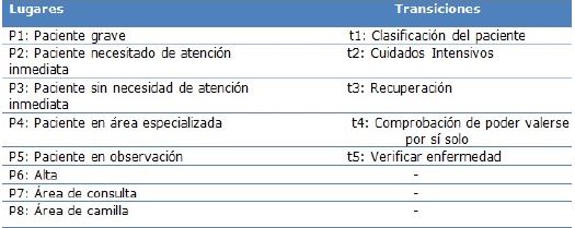 Para la descripción de los procesos se utilizaron las Redes de Petri, formalismo utilizado en sus inicios para el perfil de eventos discretos en computadoras donde los lugares se representan por círculos, las transiciones o tareas por rectángulos, los arcos por flechas y los marcados por puntos negros.