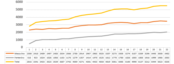 Así como una mortalidad de 2 330 casos para ambos sexos de lo cual se inferencia que por cada caso diagnosticado murieron dos paciente (Gráfico 3).