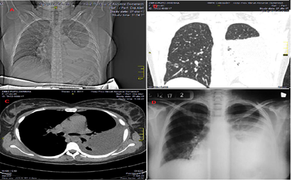 La evolución clínica y radiológica fue satisfactoria. La sonda de pleurotomía fue retirada el día 31 de diciembre de 2017 y la enferma es trasladada al hospital materno provincial el día 2 de enero de 2018 para continuidad y seguimiento del embarazo, el cual culmina sin complicaciones por parto eutócico. Se realiza control radiológico a los 30 días del puerperio, el cual es normal (Fig. 2).