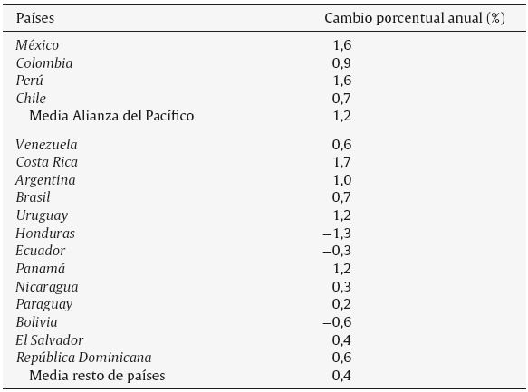 En los próximos apartados se revisará el panorama general que se da en torno a estos factores, comparando lo que sucede en los países miembros de la Alianza del Pacífico y el resto de la región. Este apartado teórico brinda un argumento previo a la revisión de la información estadística.