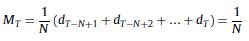 [1]donde MT es el valor del promedio móvil; N se refiere al número de periodos que se quiere considerar en el promedio móvil; dT es la demanda histórica en el periodo T y T es el proceso en el que se encuentra el periodo.