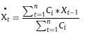 [2]donde se refiere al promedio móvil ponderado de la demanda en unidades en el periodo t; Ci es el factor de ponderación, y Xt-1 es la demanda real en unidades de los periodos anteriores a t.