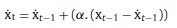 se refiere al pronóstico de ventas en unidades del periodo t -1; Xt-1 son las ventas reales en unidades en el periodo t-1, y α es el coeficiente de suavización (se encuentra entre 0 y 1).