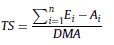Adicional a la DMA se calcula la señal de rastreo (conocida tam bién como señal de seguimiento o tracking signal [TS]), la cual es una medida de desempeño que permite medir la desviación del pronóstico respecto a variaciones en la demanda. Esta señal per mite ajustar la DMA, es decir, el pronóstico está sobre o bajo la demanda real al considerar valores positivos o negativos. Para cal cular la señal de rastreo se debe realizar el procedimiento que se encuentra en la ecuación 9.