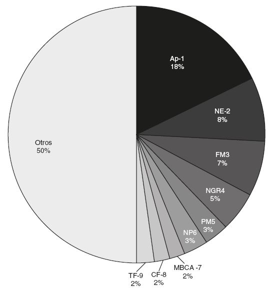 Por el alto volumen de rotación de productos en ingreso y egreso que presenta la cámara frigorífica n.° 2, esta se elige para mostrar os beneficios obtenidos en la aplicación de las técnicas de pronósticos. Debido a la alta diversidad de productos que se manejan en la empresa, se aplica una clasificación ABC (por sus siglas en inglés de activity based costing) con el fin de identificar los productos que tienen un impacto importante en el volumen global del inventario. La figura 4 muestra la participación de cada producto en el inventario de la cámara frigorífica n.°2. Dado lo anterior, se identifica una variedad de 360 productos, de los cuales los productos denominados como AP-1 y NE-2 representan el 18,4 y 8,0%, respectivamente. Por otro lado, 7 productos representan el 23,2% y el resto, que equivale a 351 productos, representan el 50,4%. Debido a la alta participación de los productos AP-1 y NE-2 en el inventario, representando el 26,4% del total, se han seleccionado estos productos para presentar de manera cuantitativa en esta investigación la aplicación de las técnicas de pronósticos.