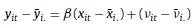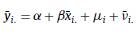 Esta misma regresión se puede obtener de forma alternativa al promediar la ecuación (1) a través del tiempo para cada individuo i: