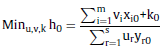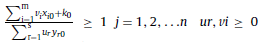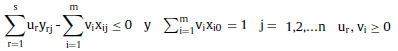 Donde xij (xij ≥ 0) representa las cantidades del input i (i = 1,2,...,m) consumidos por la j-ésima unidad e yrj (yij ≥ 0) representa las cantidades observadas del output r (r = 1,2,...,s) producidos por la j-ésima unidad.