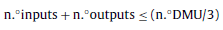Para determinar la cantidad de inputs y outputs se utilizó la siguiente ecuación (Bandeiras, 2000).