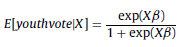The first approach consisted of the fractional-response-variable model proposed by Papke and Wooldridge (1996). In this regard, the youth vote ratio was modeled through the following pooled fractional logit (PFL) regression: