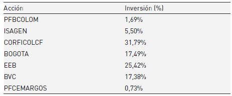 Para un escenario de mínimo riesgo, el algoritmo encuentra una solución invirtiendo de la forma que se muestra en la tabla 3. Teniendo en cuenta los costos de transacción, la rentabilidad al finalizar el primer semestre de 2016 de este segundo portafolio hubiera sido de 2,20 %, con lo que la TIRM del proyecto sería de 12,3%.