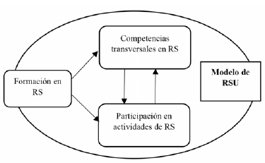 Por otro lado, son numerosas las CT que se pueden trabajar desde la educación superior en temas de RS y, sin duda, también numerosas las consecuencias beneficiosas que ello conllevaría, a la vez que importante la participación que se puede lograr de los estudiantes en actividades de naturaleza socialmente responsable. Por ello, se considera que existe una terna que afecta a los estudiantes de manera clara y directa “formación / competencias / participación en actividades de RS”, la cual constituye el modelo teórico de RSU (figura 1) y el cual se evalúa seguidamente de manera empírica.